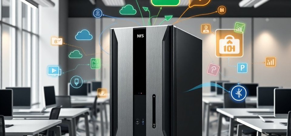 Este servidor de armazenamento suporta SSDs NVMe M.2 para cache, traz duas portas PCIe Gen3 para expansão de conectividade (incluindo 10 GbE ou placas QM2) e oferece recursos como snapshots, containers, máquinas virtuais e integração com Active Directory. Em cenários de escritório, equipes utilizam a unidade para consolidar documentos, rodar aplicações de backup e armazenar imagens das câmeras de segurança.
