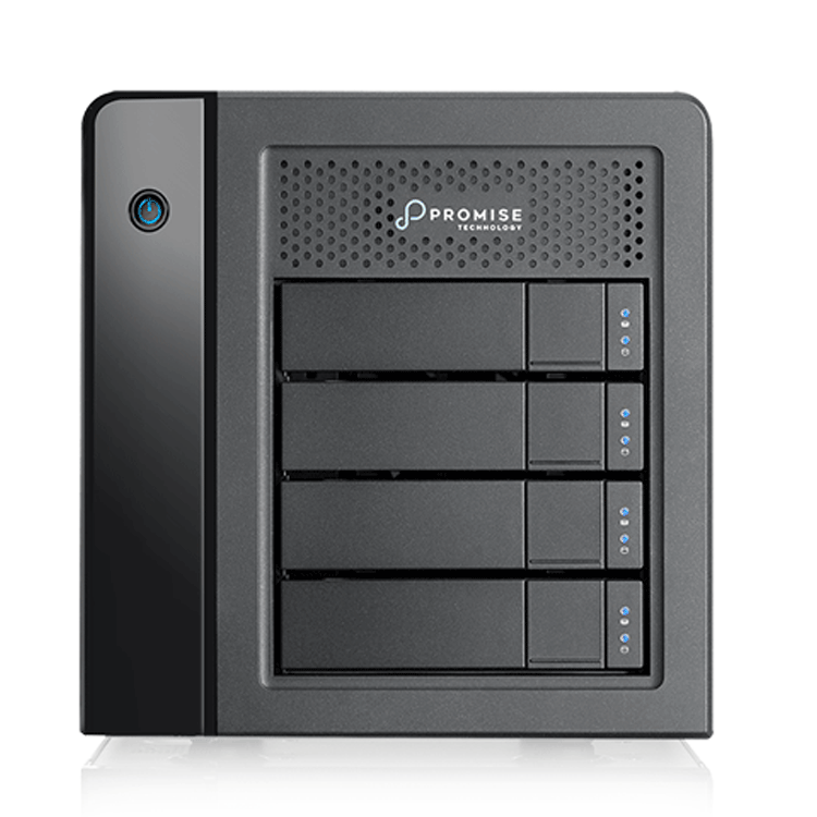 Dispositivo Thunderbolt 3 com quatro baias para discos SATA, suporte a arranjos de discos e 2 saídas Thunderbolt 3. Ideal para pós-produção, incluindo edição 4K e streaming de vídeo.